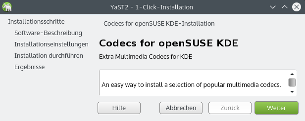 Warum kein Hinweis auf die einzubindenden 'codecs-kde.ymp' erfolgt, sei dahingestellt.